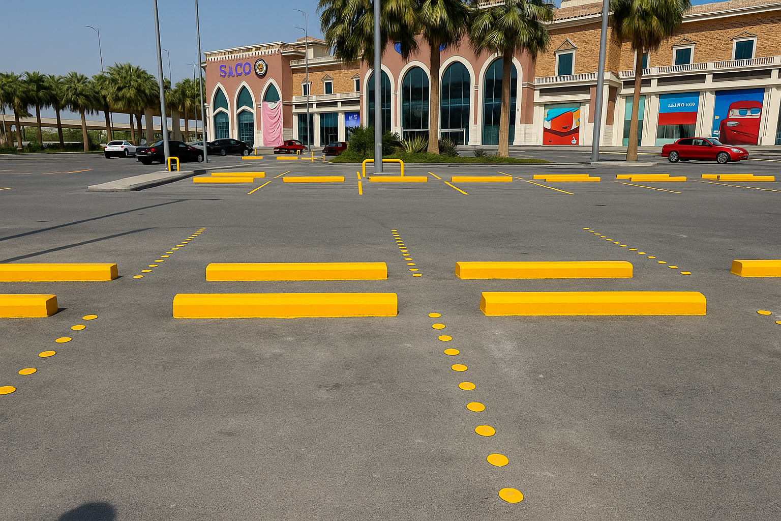 تجهيز مواقف آمنة ومنظمة، مع ترقيم وتخطيط مخصص لراحة المستخدمين وفعالية الاستخدام.